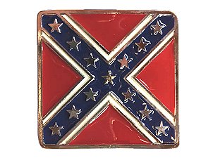 This high quality pewter belt buckle features the Army of Northern Virginia square pattern battle flag. Raised design with chrome edges (either gold or silver) and stars and covered with a protective epoxy coating. Measures approximately 4"x3". These buckles were produced over 20 years ago by an American company and are no longer being made.