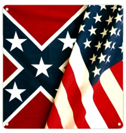This metal sign features a combination of the Confederate battle flag and the United States flag. Made of quality aluminum with fade resistant sublimated artwork and a gloss finish. Lightweight and durable with pre-drilled holes for quick and easy mounting. Individually shrink-wrapped and proudly made in the USA. Available in two sizes: S (6"x6") and L (12"x12").